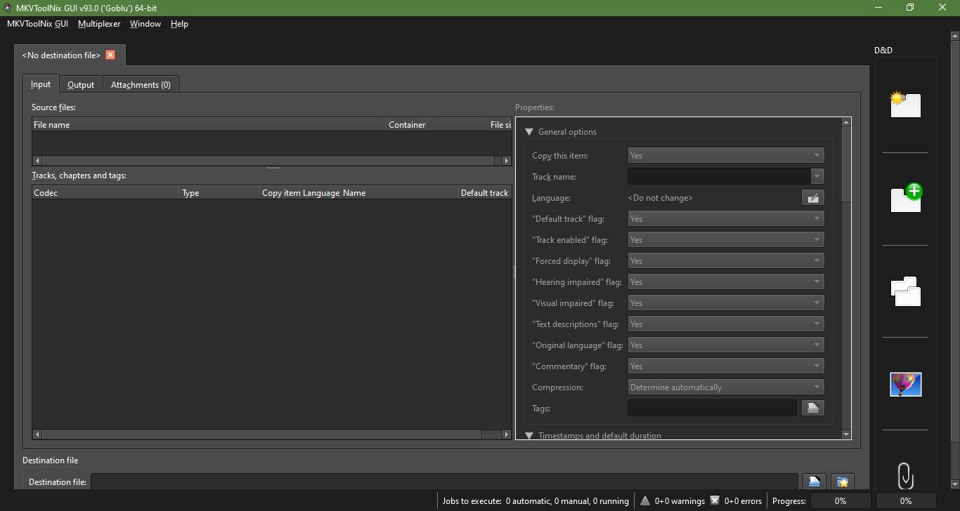 After many years of using MKVToolNix I’m stumped. Randomly a panel has appeared on the right side of the GUI for drag and drop, it’s marked D&D. I don’t know how I opened it, and I can’t find any setting or documentation for it. Can someone please enlighten me as to how I can close/disable it?